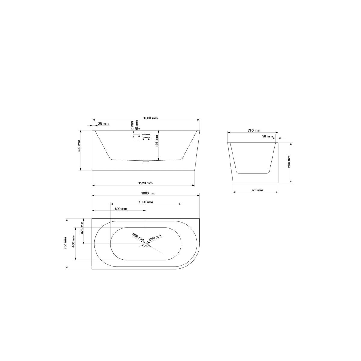 - la baignoire autoportante Hagser est équipée d'un système d'évacuation et de trop-plein intégré avec un trop-plein minimaliste à fente