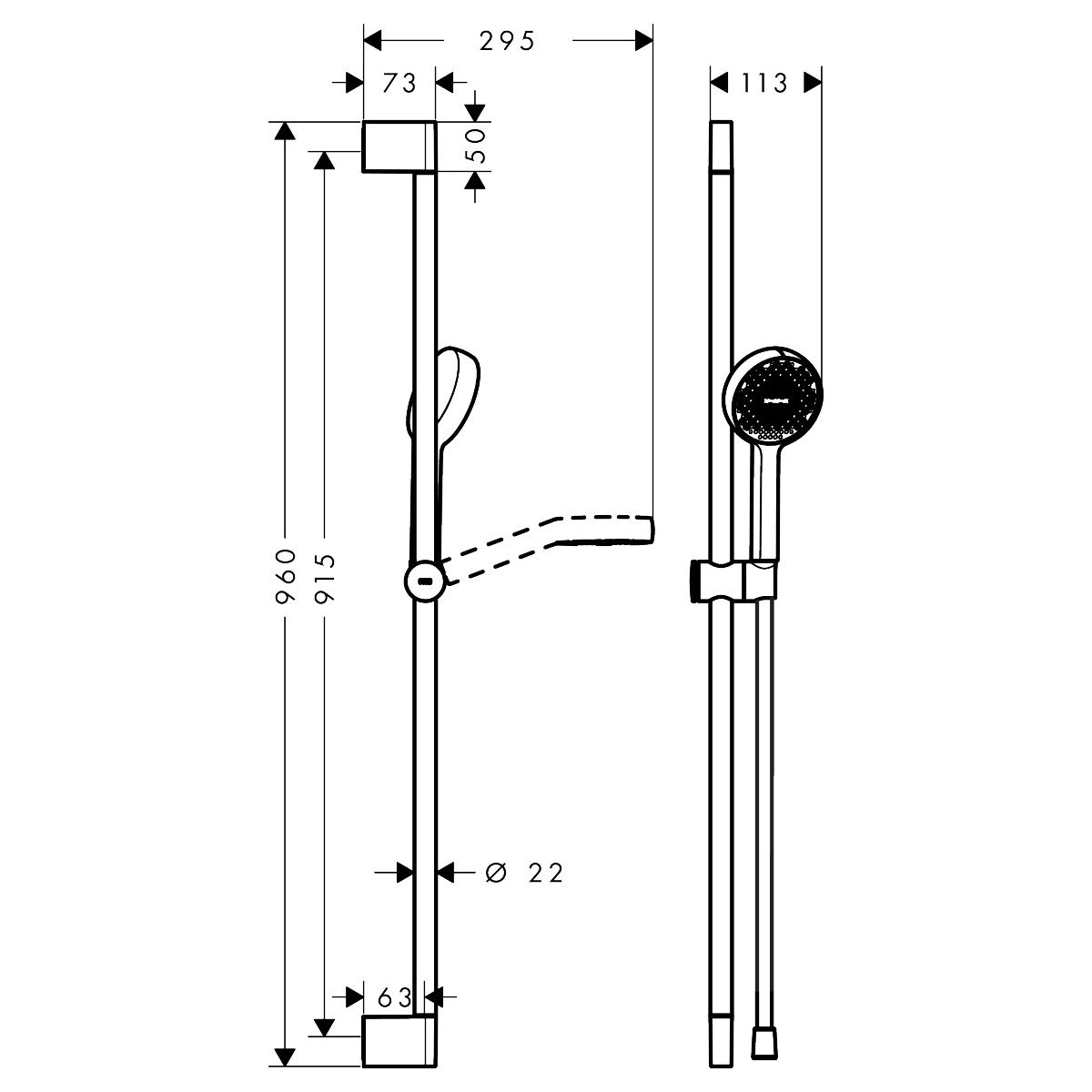 - La barre de douche originale hansgrohe Unica (0,90 m) offre un confort exceptionnel