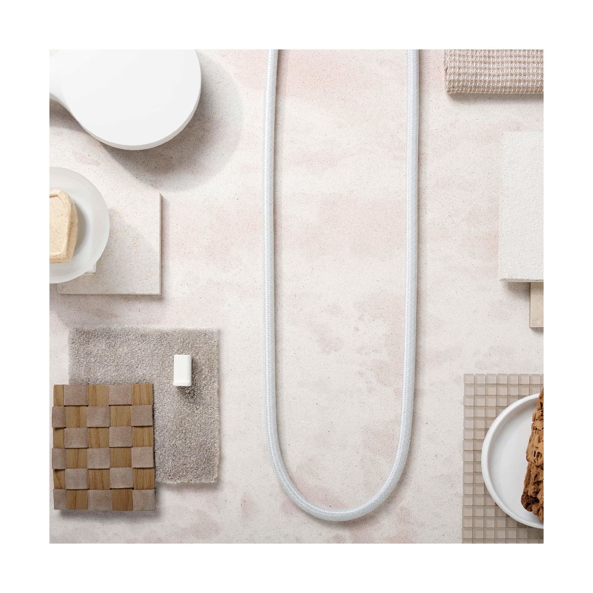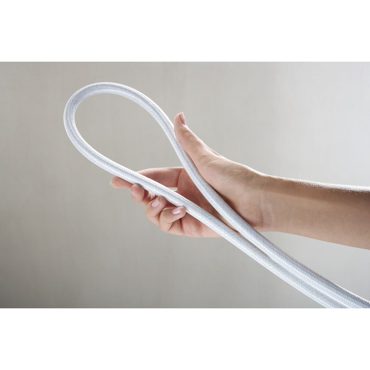 Designflex est un flexible de douche qui impressionne par la texture tactile de sa surface textile. Le secret de ce tuyau de douche réside dans le matériau hydrofuge et déperlant créé à partir de bouteilles PET recyclées. Les fibres multicolores sont tressées ensemble, ce qui donne un motif chatoyant et un aspect unique. De plus, Designflex est 30 % plus léger que les flexibles Hansgrohe standard. Le tuyau est résistant à la rupture et protégé contre la torsion. Il est universel et compatible avec toutes les douchettes à main courantes et peut être lavé au lave-vaisselle.