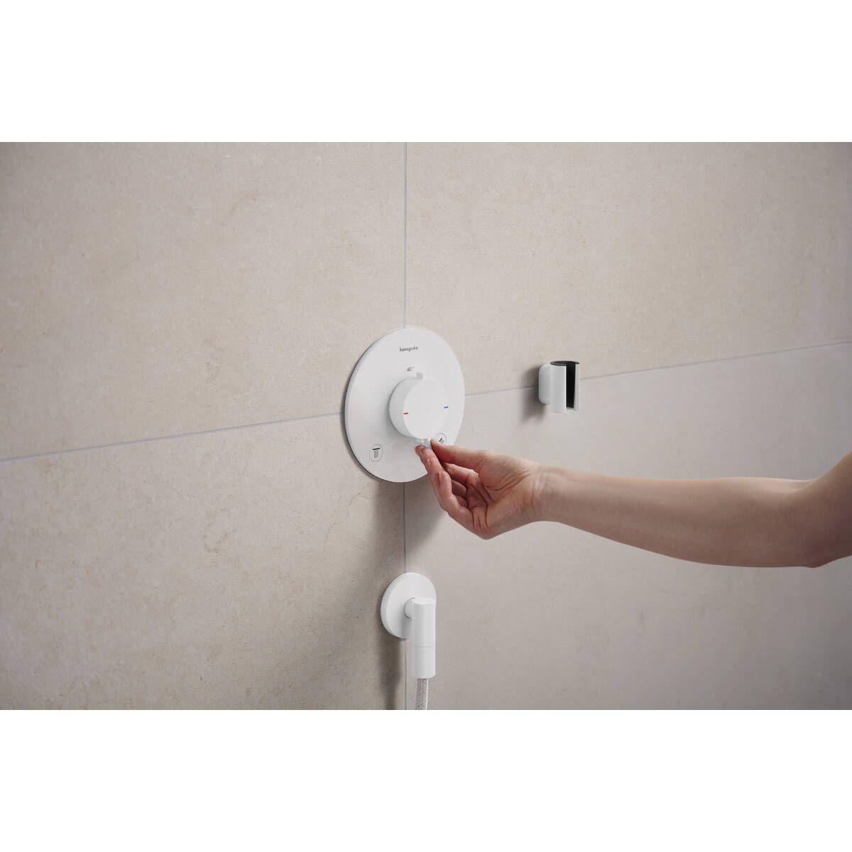 - Température souhaitée : le mitigeur thermostatique hansgrohe maintient de manière fiable la température réglée à tout moment et la régule automatiquement si nécessaire.