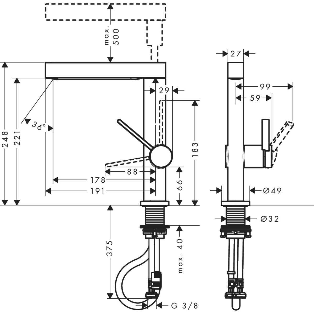 - le jet revient lorsque l'on appuie sur l'interrupteur du jet, et automatiquement lorsque l'écoulement est fermé