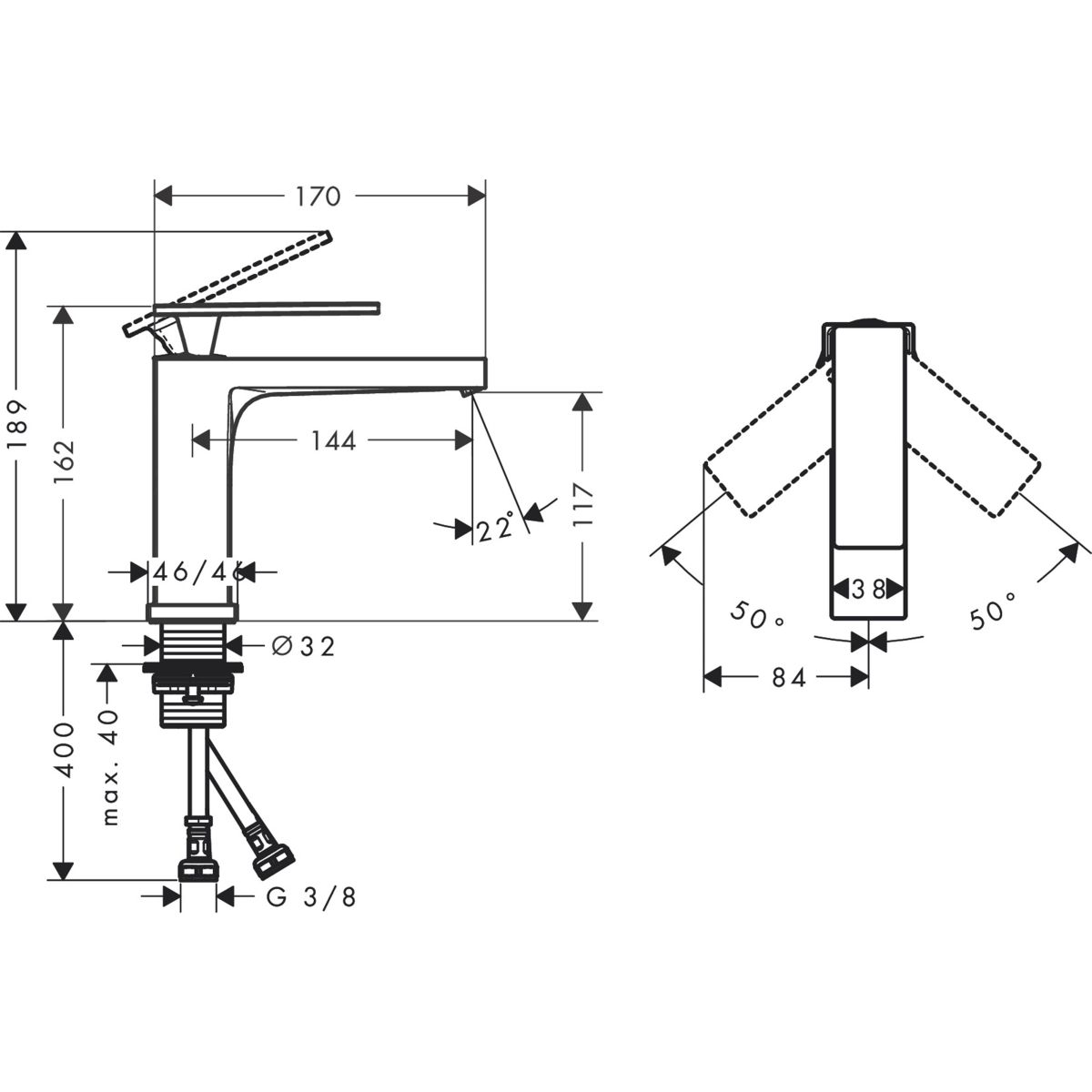 -hauteur du bec : 117 mm