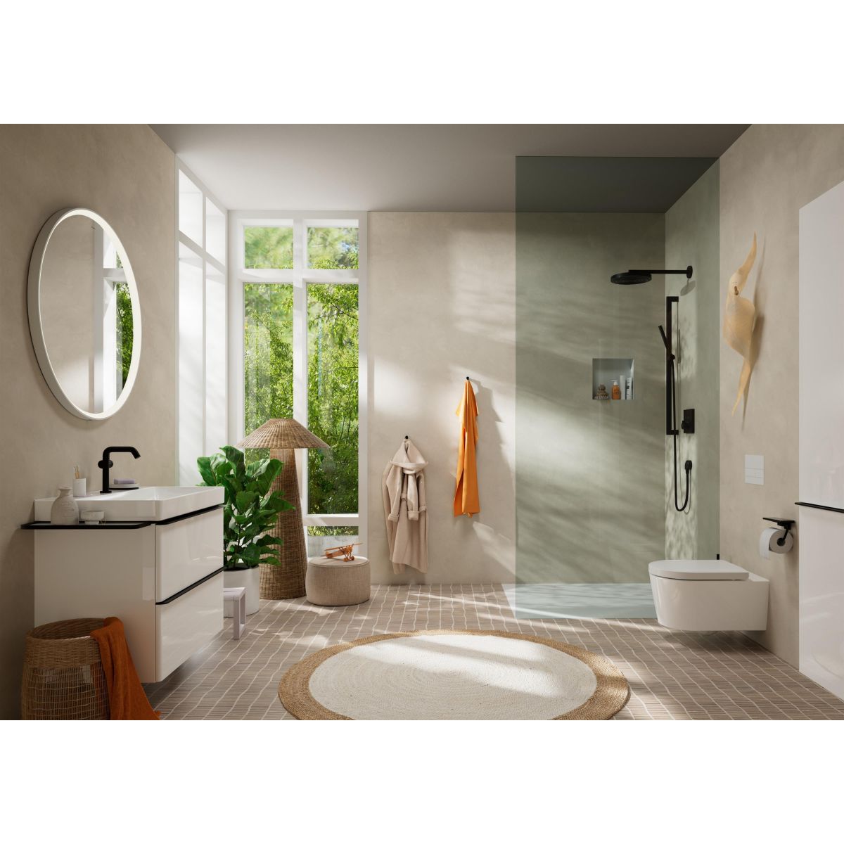 Avec les meubles de salle de bains de la gamme Hansgrohe Xelu, vous pouvez aménager la salle de bains de vos rêves à votre guise. Qu'il s'agisse d'aménager des toilettes pour invités ou une grande salle de bains familiale : les meubles Xelu sont conçus jusque dans les moindres détails et sont disponibles en différentes tailles et versions de couleurs, ce qui vous permet de combiner habilement le quotidien familial et le style personnel. Les bords arrondis attirent le regard au premier coup d'œil et sont complétés par la poignée en aluminium disponible en chrome, noir mat ou blanc mat. Les pieds de meubles sont disponibles en option. Ils donnent l'impression que les meubles muraux sont posés sur le sol et leur couleur est parfaitement assortie à celle des poignées. Grâce au joint creux innovant entre la céramique et le meuble, le lavabo donne l'impression de flotter. Cette caractéristique supplémentaire offre encore plus : il est possible d'y installer une étagère pratique et un porte-serviettes qui s'intègrent harmonieusement au mobilier.