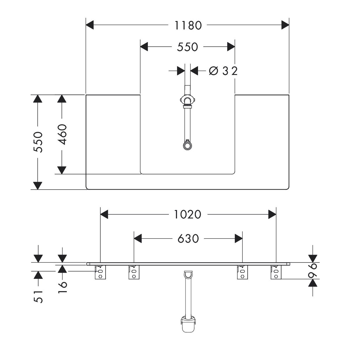 Hansgrohe Xelu Q plan de travail suspendu 118x55 cm noyer 54111630