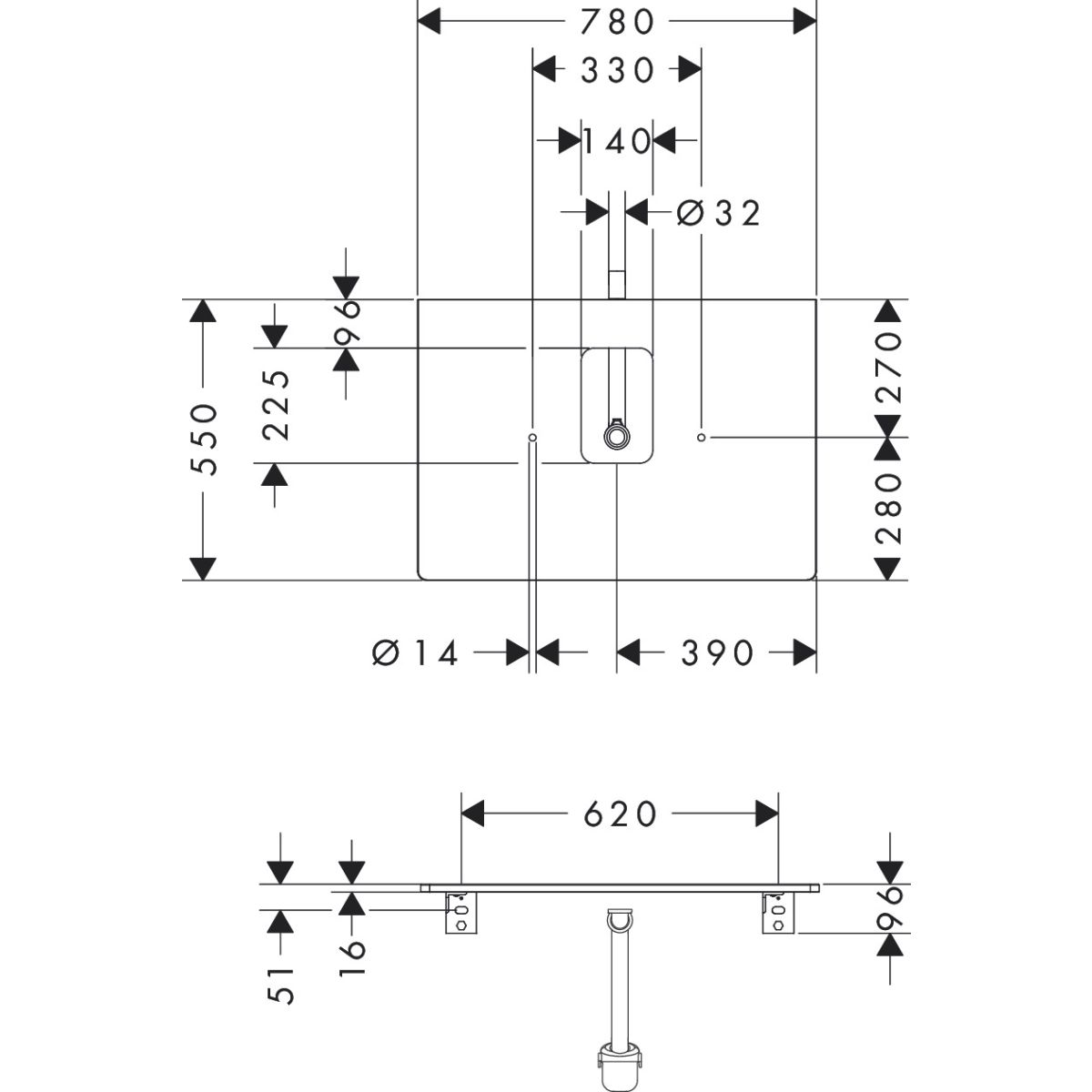 Hansgrohe Xelu Q plan de travail suspendu 78x55 cm gris 54120910