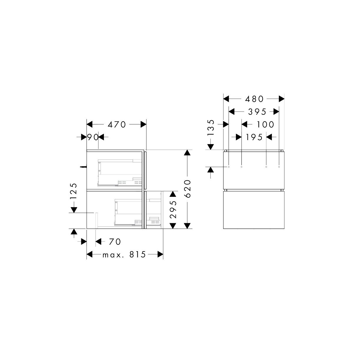 Créez la salle de bains de vos rêves avec les produits complémentaires de hansgrohe. Les lavabos Hansgrohe de différentes lignes sont compatibles avec le meuble lavabo. Conseil : pour donner l'impression d'un meuble sur pied, ou si la capacité de charge du mur est insuffisante, deux pieds sont disponibles en option.