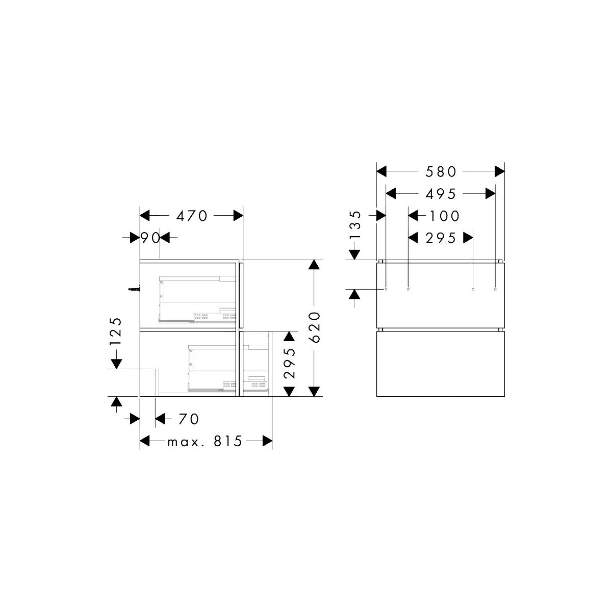 Xilesa E de hansgrohe allie design et fonctionnalité pour offrir une expérience confortable et impressionnante. Les tiroirs s'ouvrent facilement grâce à l'élégant joint creux. Il n'est pas nécessaire de serrer les poignées. Le meuble lavabo offre un espace de rangement maximal - grâce au siphon peu encombrant (vendu séparément : #54235000), aucune découpe de siphon n'est nécessaire !