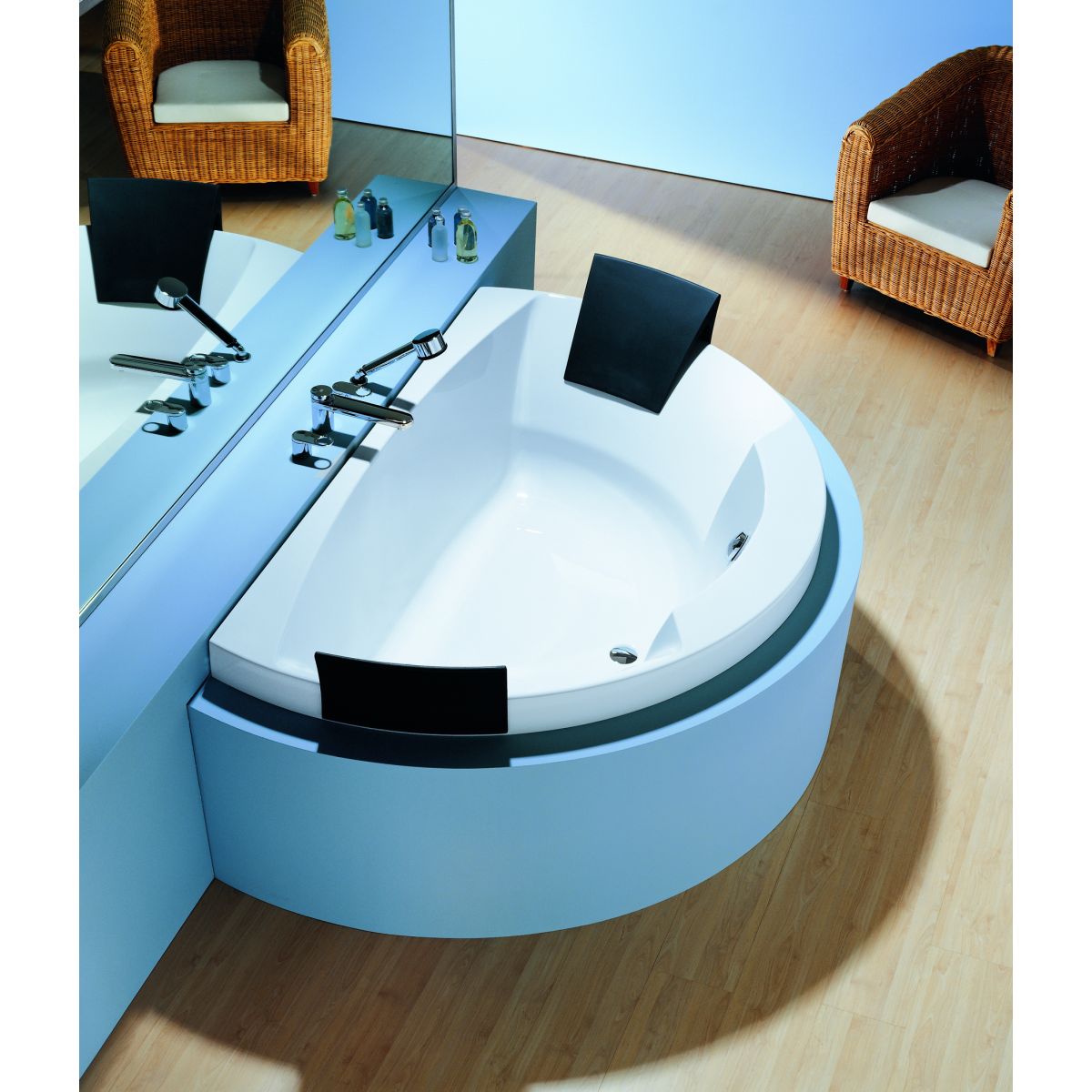 Aviva® est le complément d'un confort raffiné. Un plaisir esthétique qui s'apprécie en partageant un bain, allongé ou assis. Aviva, c'est un design contrasté et un plaisir ergonomique. La version murale est une façon élégante de s'immerger dans le plaisir de la détente à deux. Le raffinement de la forme intérieure de la baignoire, les étagères pratiques pour les accessoires de bain et les appuis-tête lombaires dédiés en sont les signes distinctifs.