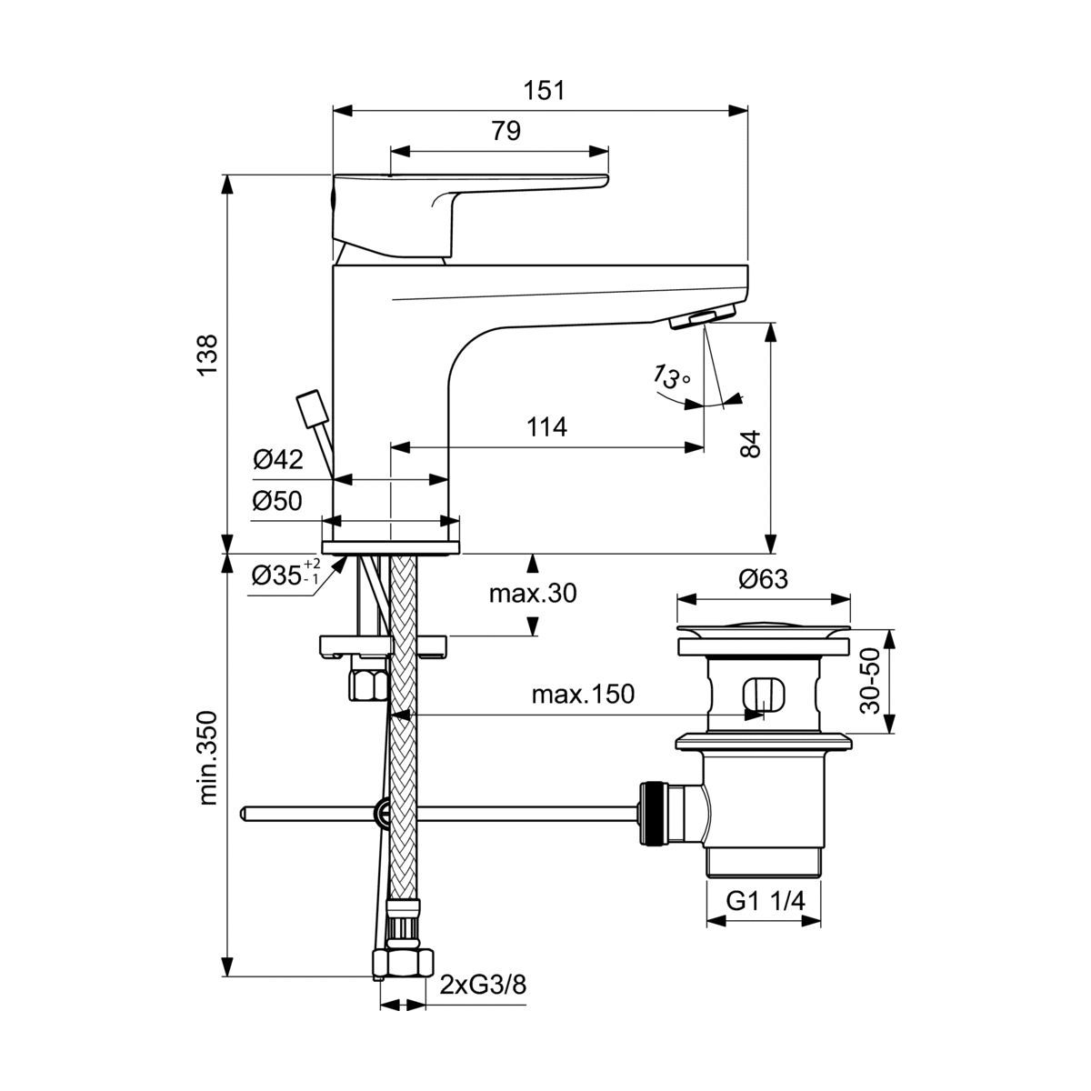 - hauteur de la sortie d'eau à la base du mélangeur H80