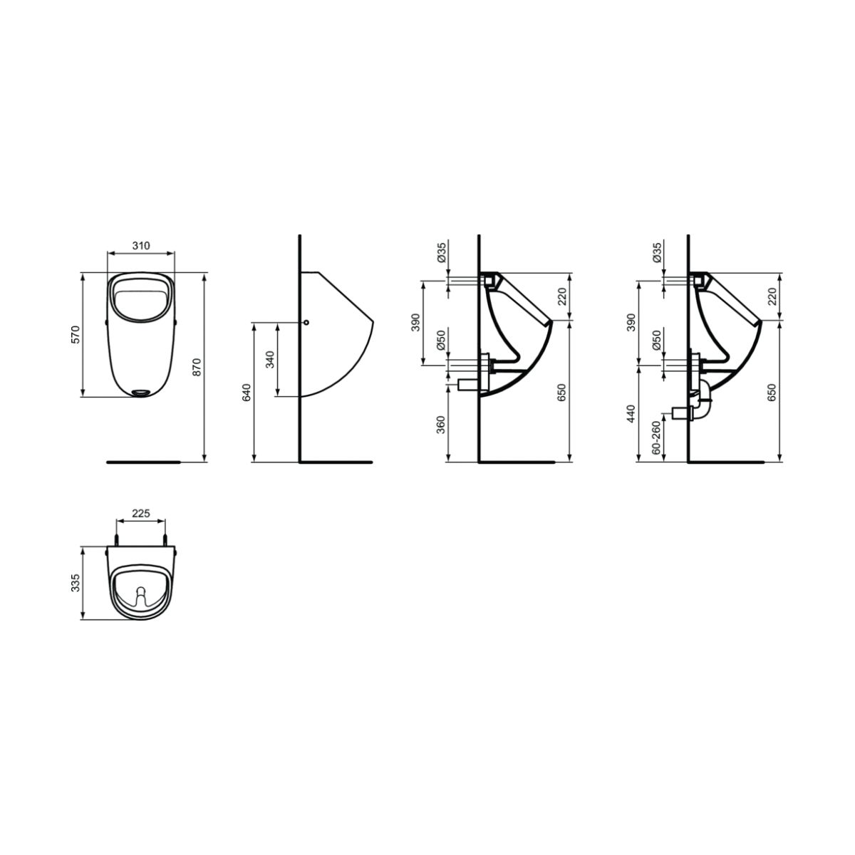 - à combiner avec le kit de raccordement pour urinoir K710667 et le siphon avec sortie horizontale ou le siphon avec sortie verticale (vendus séparément)