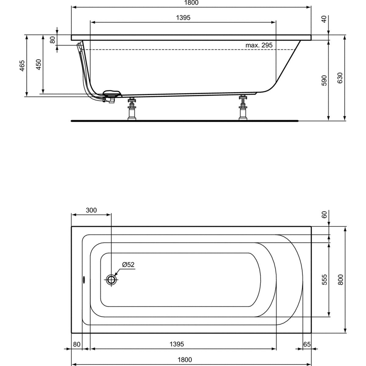 Ideal Standard Hotline New baignoire rectangulaire 180x80 cm blanc K274801