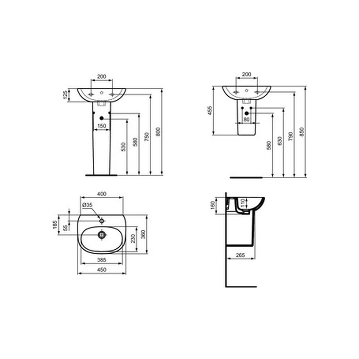 - à assembler avec : petit piédestal T352101, petit semi-piédestal T352001 ou seul avec siphon