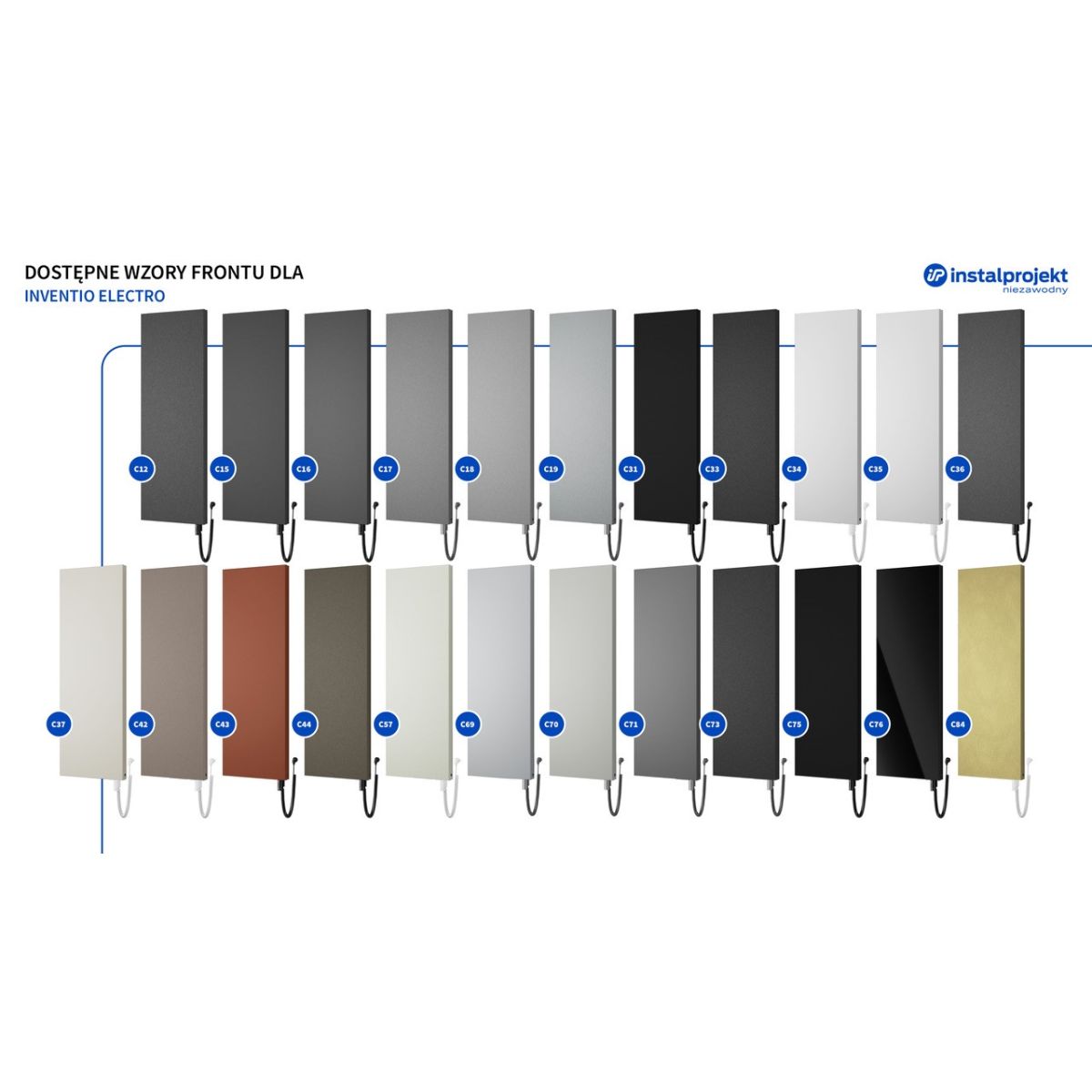 Inventio Electro est un succès sur le marché des radiateurs design et probablement le radiateur d'ambiance le plus tendance et le plus minimaliste ! Sa façade en métal thermolaqué apporte harmonie et élégance à l'intérieur. Il est également très durable. Vous pouvez facilement exposer le radiateur - à côté du canapé, des étagères ou dans le couloir - ou le cacher, grâce à la courte distance entre la façade et le mur. L'écran lisse n'accumule pas de poussière excessive et se nettoie facilement, ce qui est un atout précieux pour les amateurs d'harmonie et d'ordre. Il est disponible en 23 couleurs de la palette Instal Projekt et en 10 types de tailles et de puissances de chauffe différentes. Le radiateur peut
