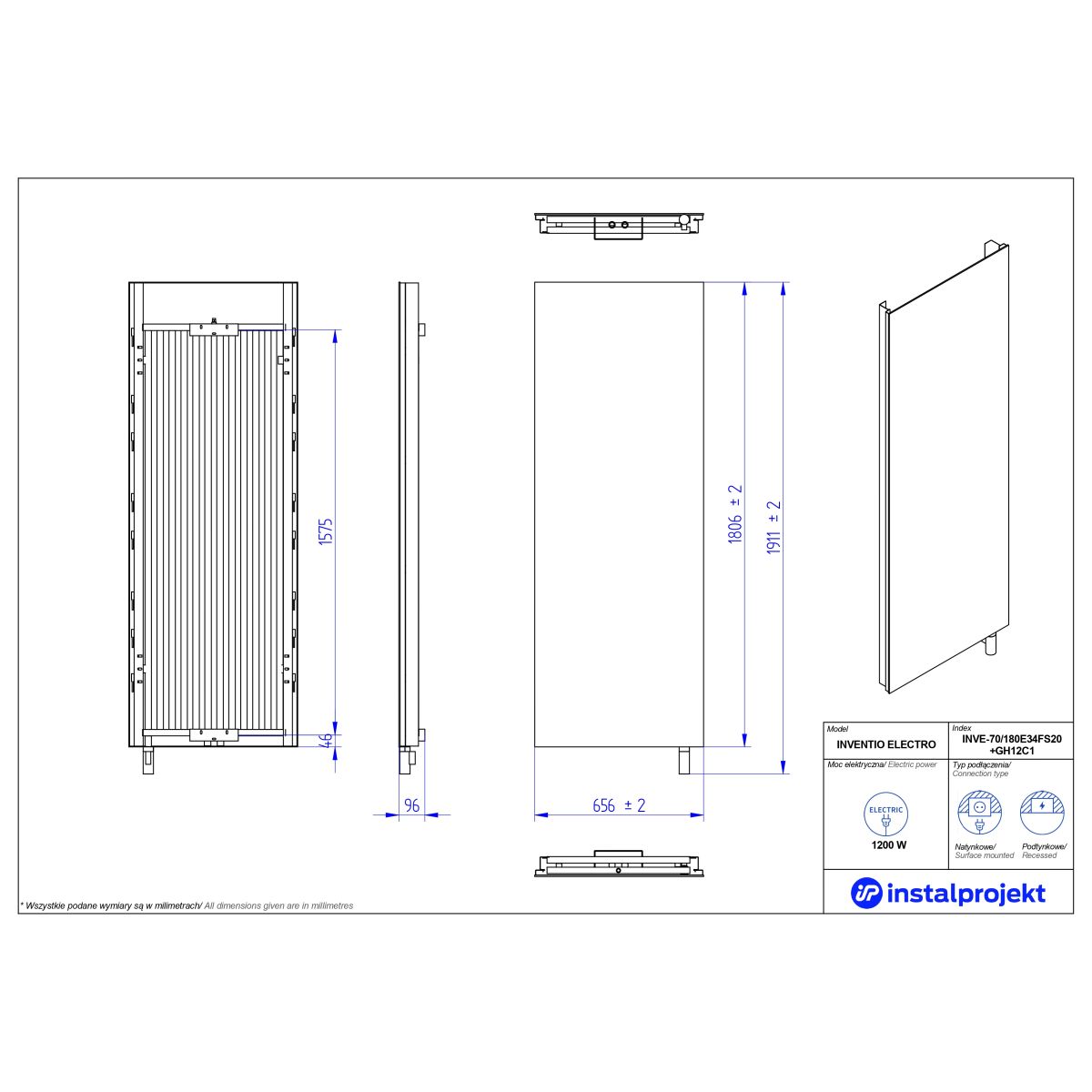 Instal Projekt Inventio Electro radiateur électrique 180.6x65.6 cm blanc-noir INVE-70/180E31FS21+GH-12C2