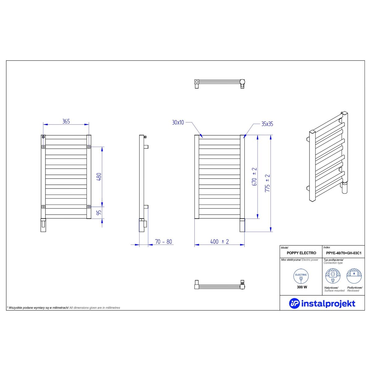 Avec Poppy Electro, vous avez la garantie d'un chauffage fiable et économique à tout moment de l'année. Vous pouvez facilement suspendre des serviettes mouillées et d'autres petits textiles sur les profils relativement espacés pour les faire sécher. La surface lisse chauffe rapidement et uniformément tout en restant sûre au toucher, ce qui est particulièrement important si des enfants sont présents dans la maison. Grâce au chauffage électrique de pointe HOT2, l'appareil est facile à utiliser (commande tactile à plusieurs niveaux) et offre un certain nombre de fonctions utiles : signal d'alarme, minuterie, mode antigel. L'absence d'électronique sophistiquée augmente la résistance de l'appareil aux pannes. Poppy Electro est une solution idéale pour les maisons et les appartements sans système de chauffage central, avec chauffage par le sol, chauffage au plafond et pompes à chaleur.