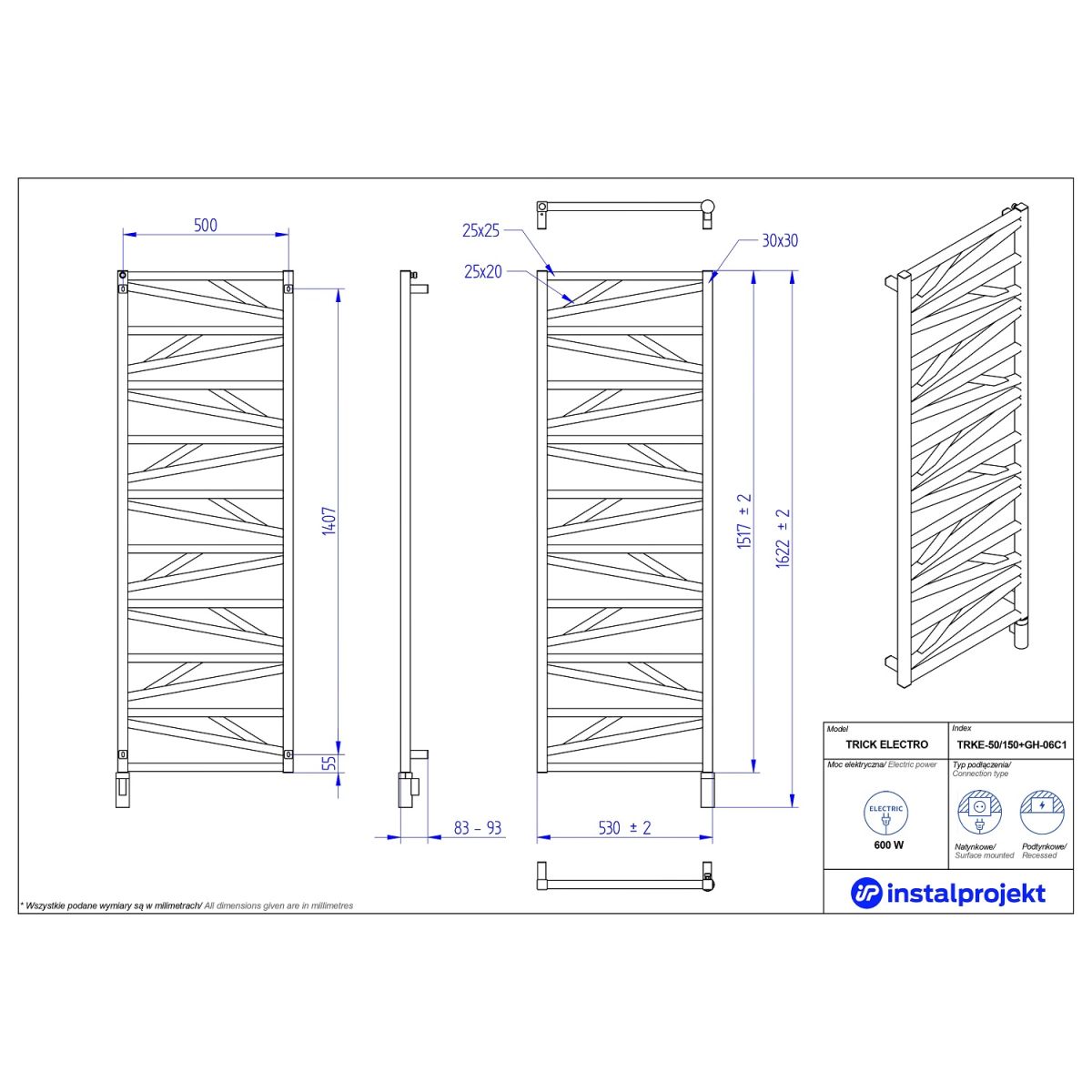 Un seul regard suffit pour apprécier pleinement la beauté du radiateur de salle de bains Trick Electro, qui s'inspire de la nature. Son caractère unique est dû à la disposition particulière de ses profilés qui, tels les nervures d'une feuille, créent des lignes subtiles et fascinantes. C'est une élégance extraordinaire sous une forme unique. Le radiateur s'intègre parfaitement dans les aménagements modernes, où l'harmonie et l'hommage à la nature prédominent. Il est disponible en deux couleurs, noir et blanc, en version mate ou brillante. Il est également possible de choisir la couleur noire dans les variantes « structure », qui rappellent délicatement les nuances de gris, ou, moyennant un supplément, de commander le radiateur dans l'une des 23 couleurs de la palette Instal Projekt.