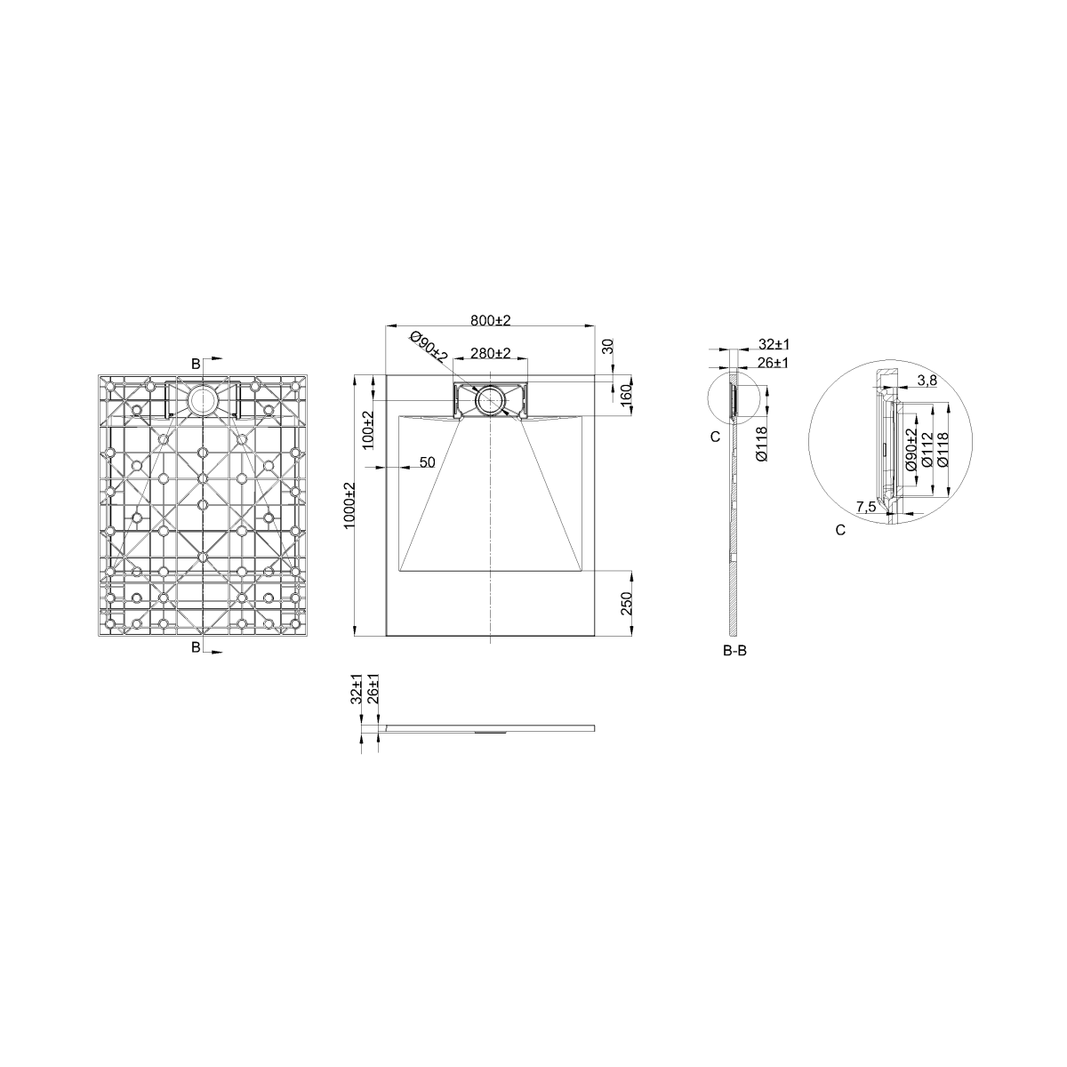 Le receveur de douche ALVERO 80 × 100 cm offre un espace de baignade plus grand, idéal pour se détendre au quotidien. Son profil bas (2,6 cm) et son design élégant en font un choix idéal pour les salles de bains modernes de style hôtelier. La durabilité du composite SMC et la résistance aux rayons UV, à l'humidité et aux détergents garantissent la longévité du produit. La bonde située sur le côté le plus court facilite l'installation dans les systèmes de plomberie standard. À combiner avec le siphon Easy Clean (SU-AK-701) ou le siphon Slim (SU-AK-702)