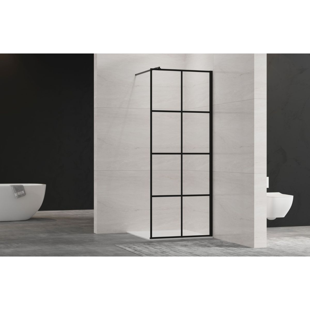Apportez le chic industriel à votre salle de bains avec la paroi de douche à l'italienne, dont le verre géométrique unique avec grille noire est un élément de design unique. Conçue pour les amoureux du style loft, cette cabine de douche élégante allie brutalité et élégance pour créer une atmosphère unique dans votre salle de bains.