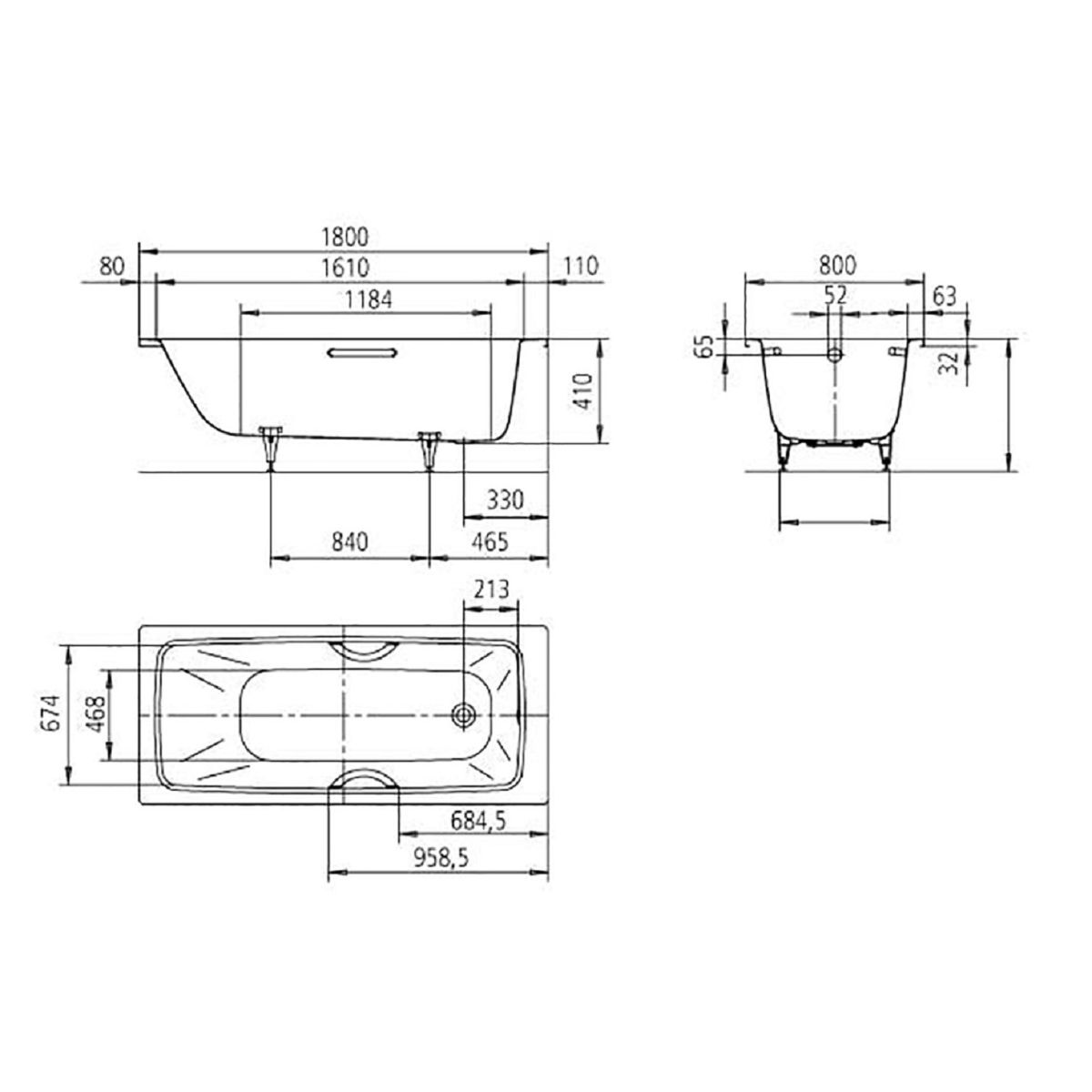 Kaldewei Cayono Star baignoire rectangulaire 180x80 cm blanc 275700010001