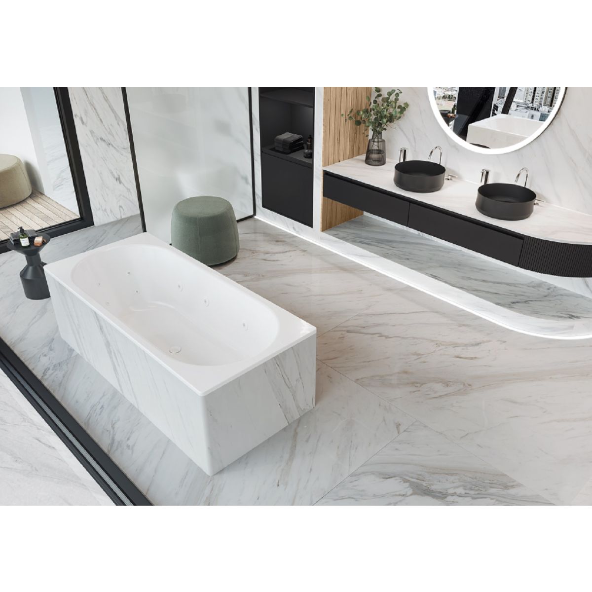 Version classique de la baignoire rectangulaire. Forme intérieure en forme d'ellipse. Duo signifie que le produit dispose de deux supports dorsaux identiques, ce qui rend la baignoire idéale pour le bain à deux. L'écoulement a été placé au milieu pour un maximum de confort. Elle s'adapte parfaitement aux surfaces de douche : Superplan, Superplan Plus, Superplan Zero, Scona ainsi que les lavabos Classic, Miena et Nueva.