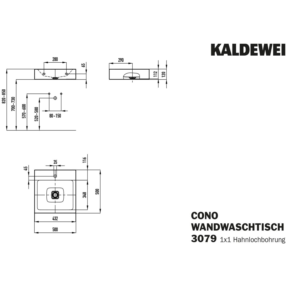 Kaldewei Cono lavabo 50x50 cm carrée classique blanc 908606013001