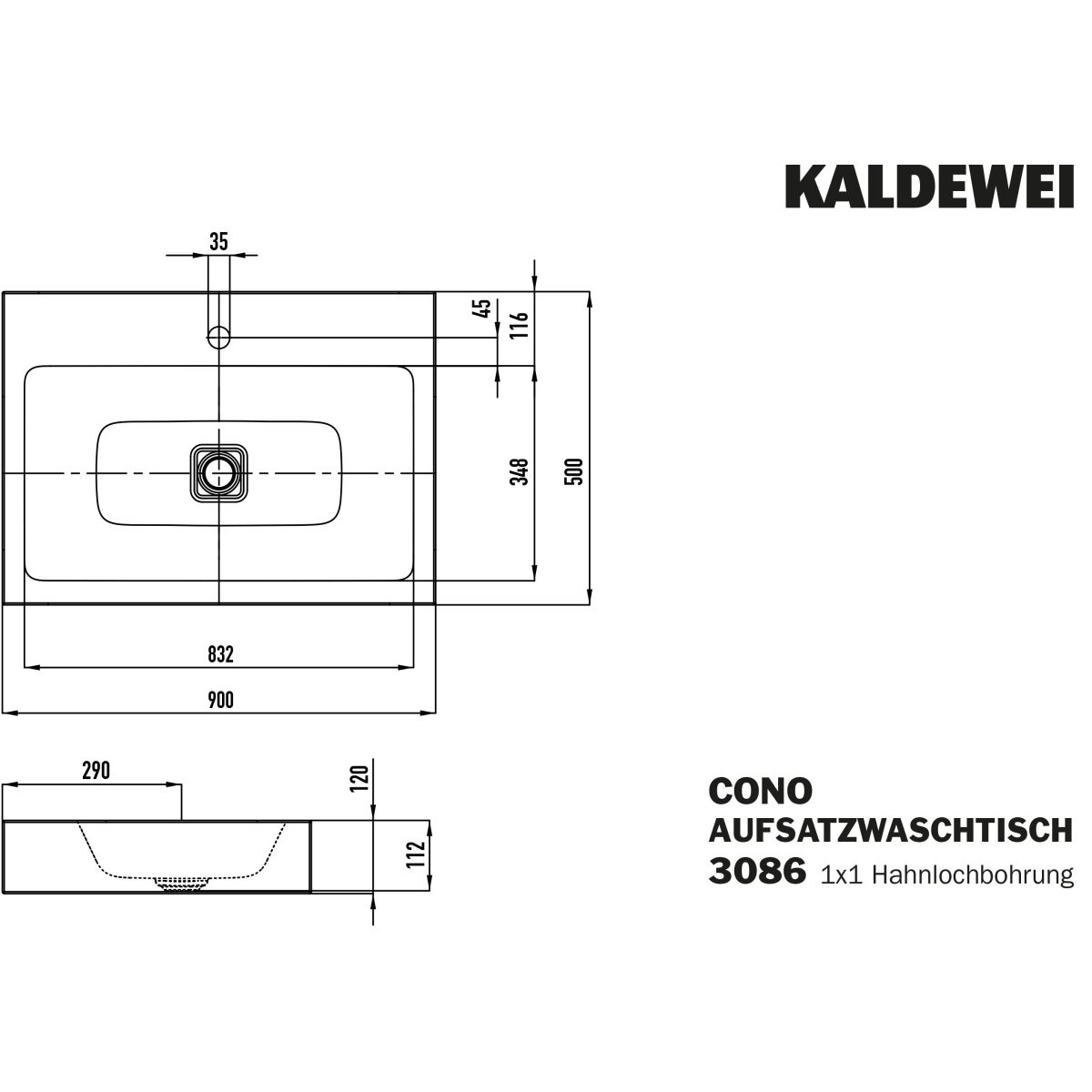Kaldewei Cono lavabo 90x50 cm rectangulaire à poser blanc 902206013001