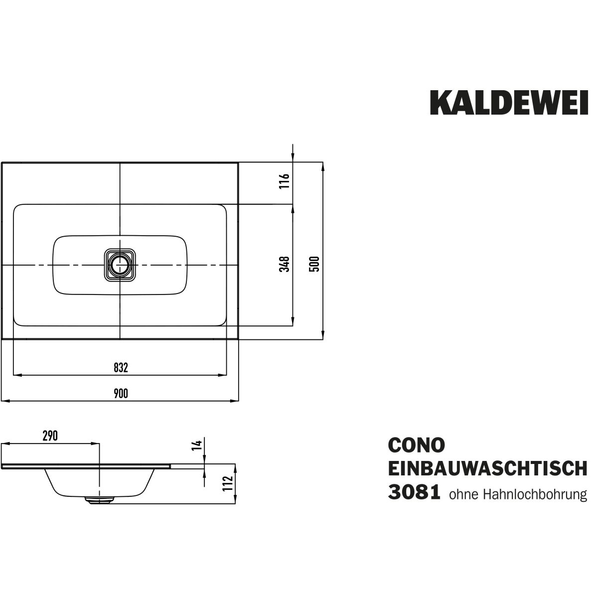 Kaldewei Cono lavabo 90x50 cm rectangulaire encastrée blanc 901706003001