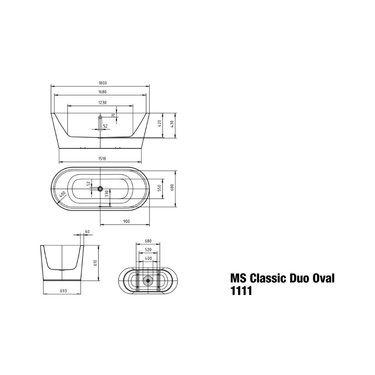 Kaldewei Meisterstück Centro Duo baignoire ovale 180x80 cm ovale blanc 202642670001