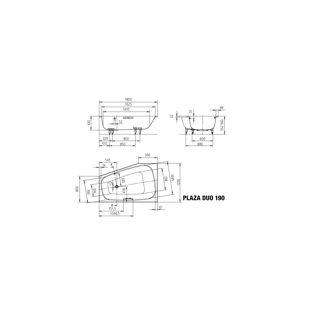 Kaldewei Plaza Duo baignoire d’angle 180x120 cm côté droit blanc 237000010001