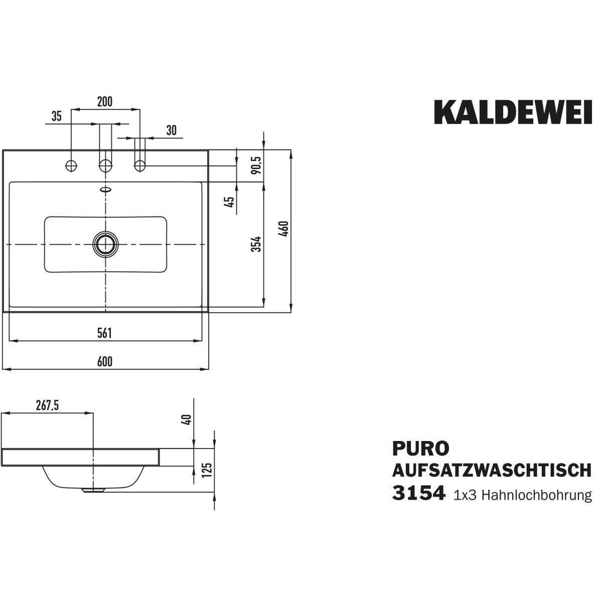 Kaldewei Puro lavabo 60x46 cm rectangulaire à poser blanc 900406033001