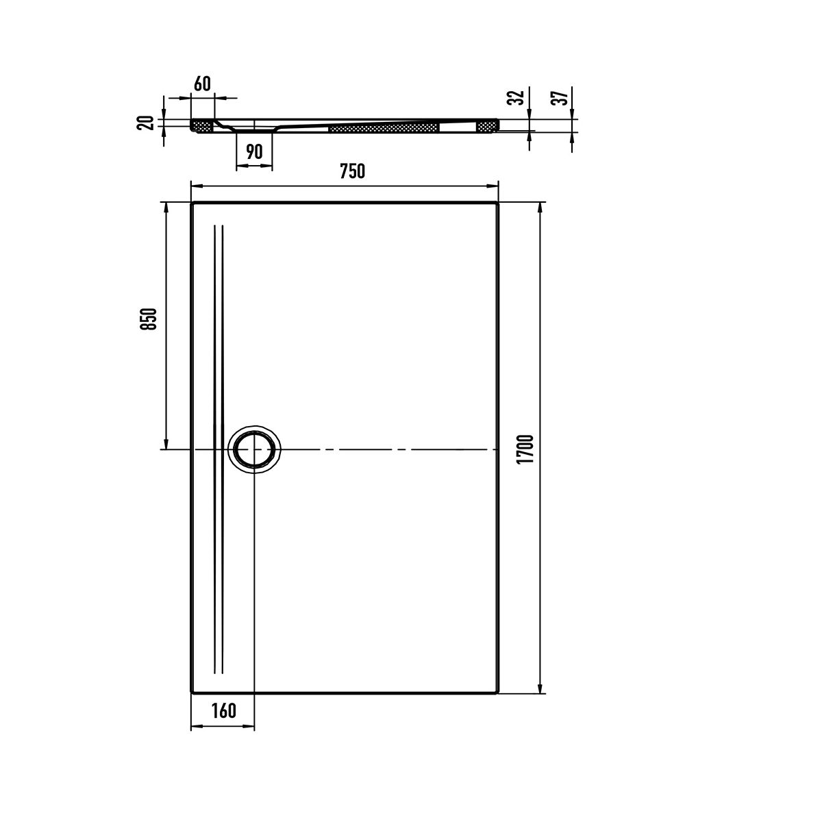 - hauteur totale du receveur de douche avec support - 3,7 cm
