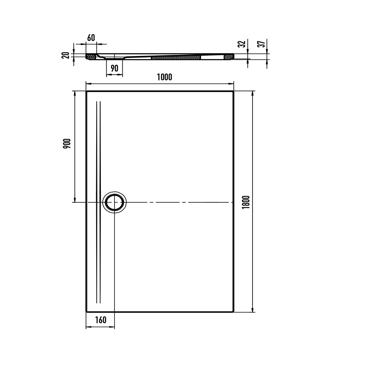 - hauteur totale du receveur de douche avec support - 3,7 cm