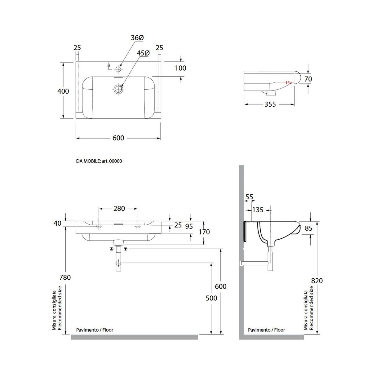 Kerasan Agua Libre lavabo 60x40 cm encastrée noir 341131
