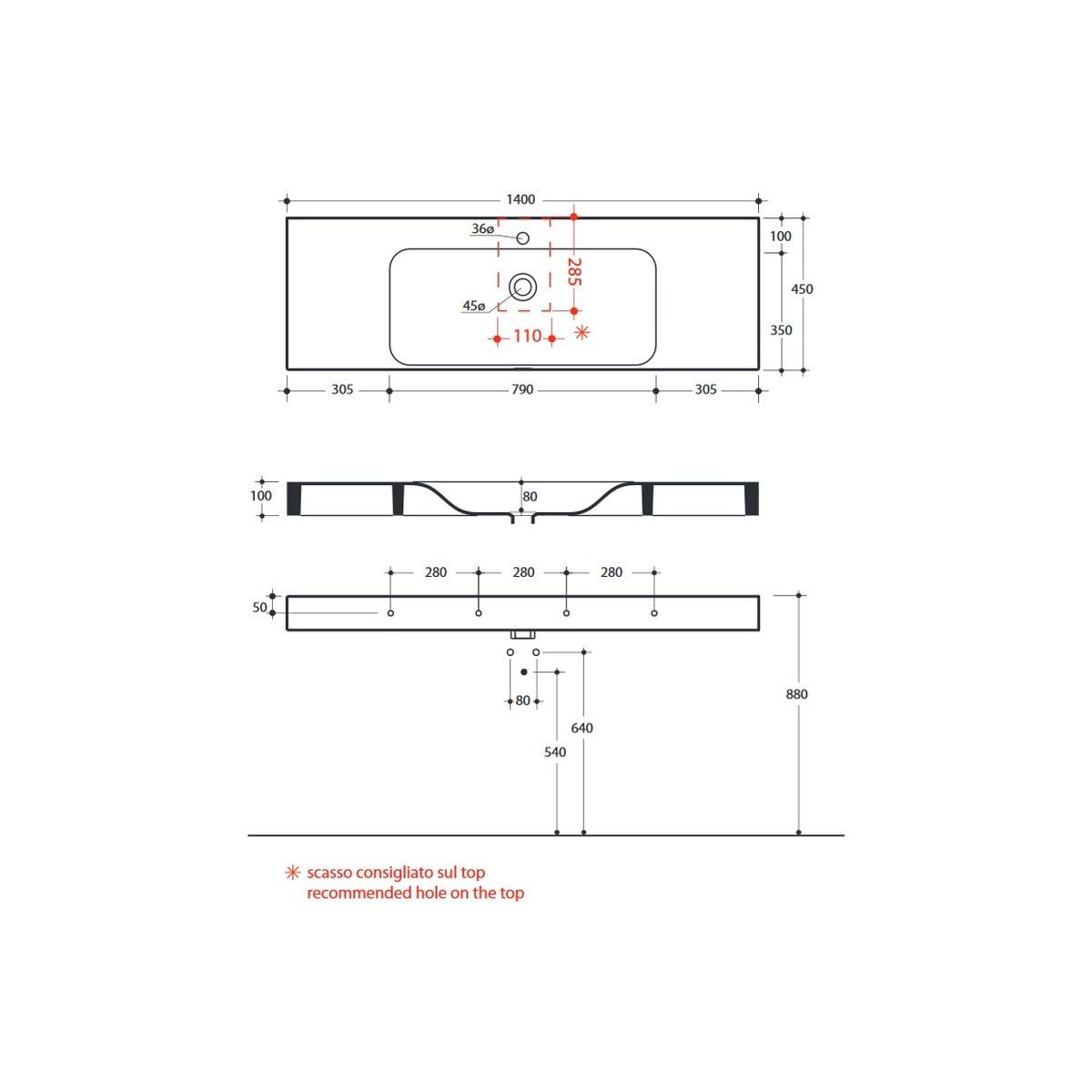 Kerasan Cento lavabo 140x45 cm rectangulaire classique-à poser-avec plateau blanc 353501