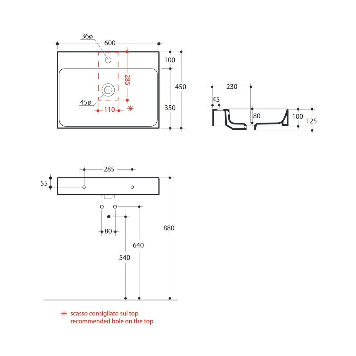 Position de la cuvette du lavabo: au milieu