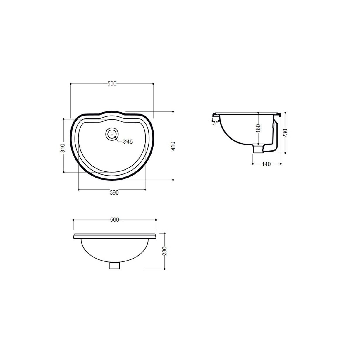 Kerasan Retro lavabo 50x51 cm semi-circulaire encastrée blanc 103101