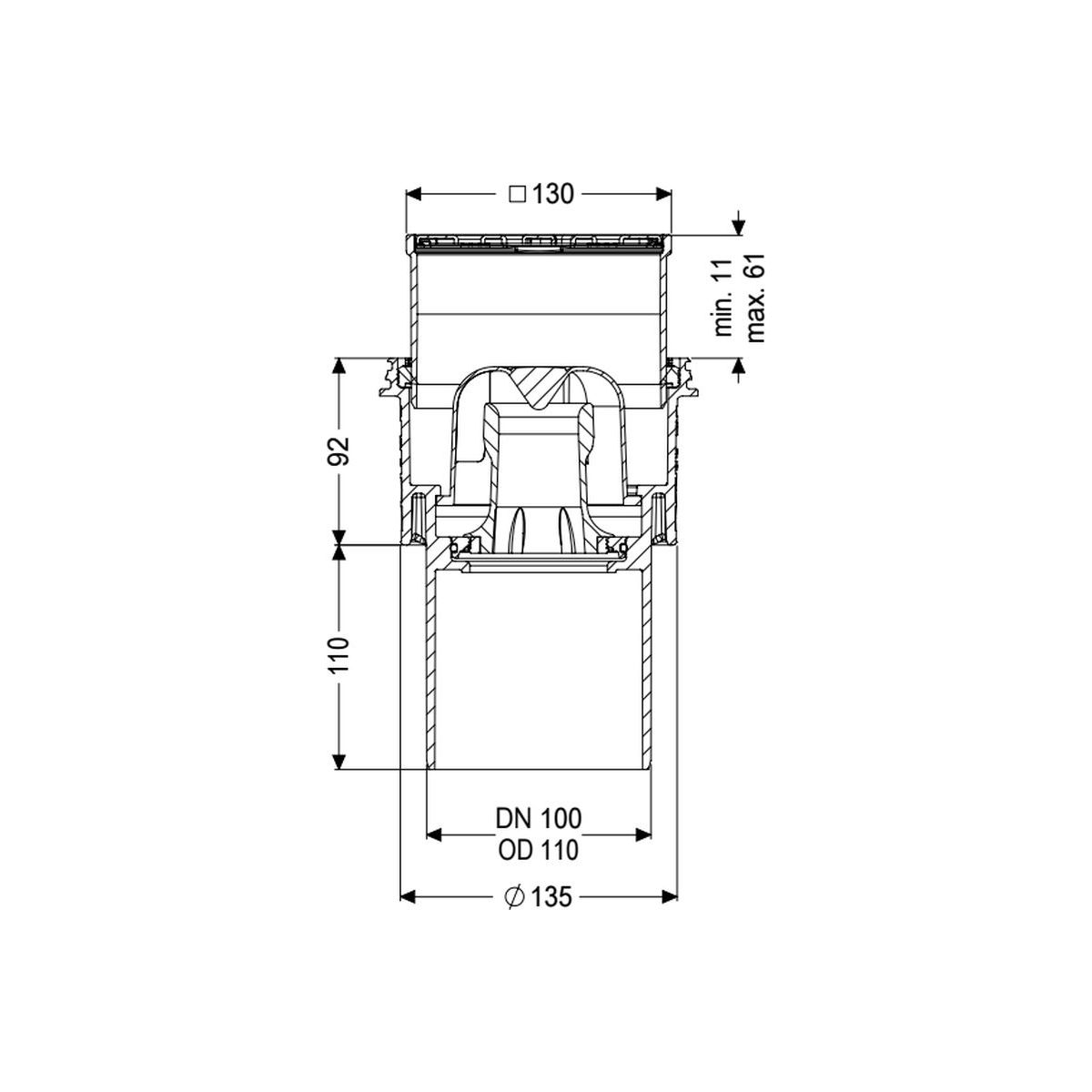 Le siphon de sol/plafond Practicus en plastique est utilisé pour l'évacuation ponctuelle et est équipé d'un bord de raccordement et d'un siphon amovible, d'un joint à lèvres et d'un couvercle de protection pour la phase de construction. Il est équipé d'un manchon en ABS avec réglage télescopique de la hauteur. L'embout de sortie est adapté au raccordement à des tuyaux SML. Possibilité de raccordement à un système de liaison équipotentielle.