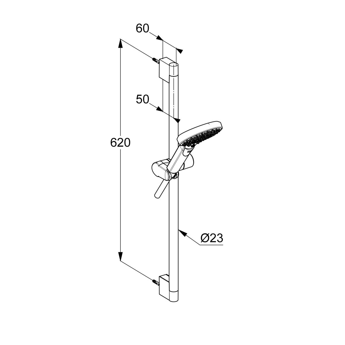 - Inclus: pommeau de douche, tuyau flexible de douche, barre de douche