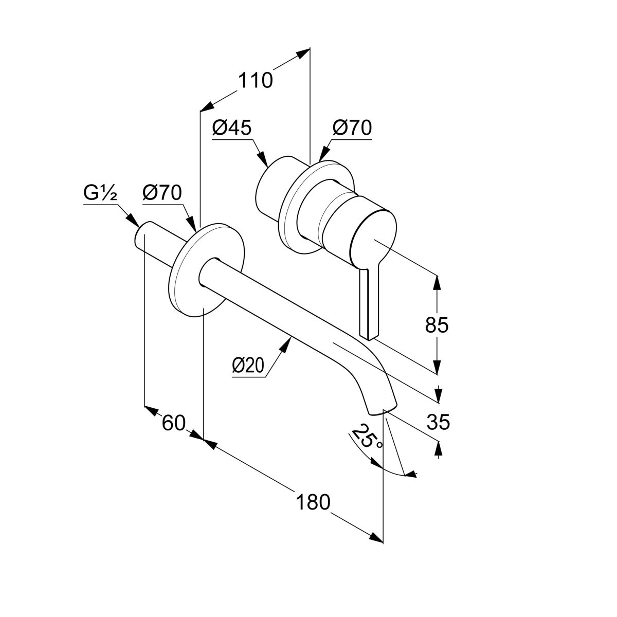 - débordement du bec 180 mm