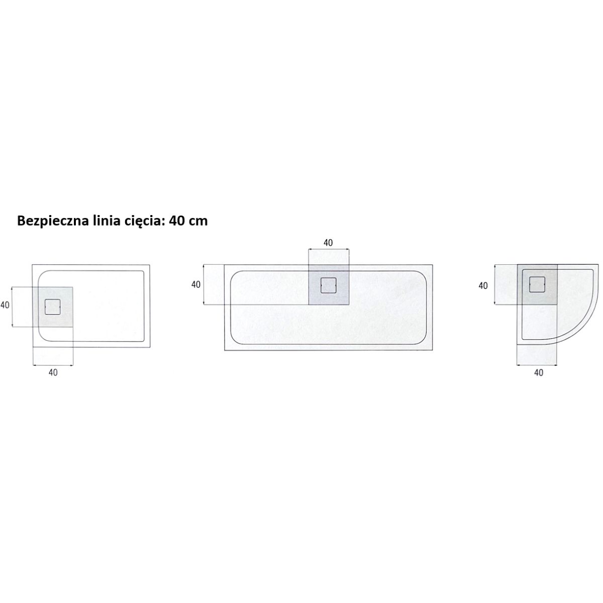 - écoulement situé au centre le long d'un des côtés Ø 9 cm