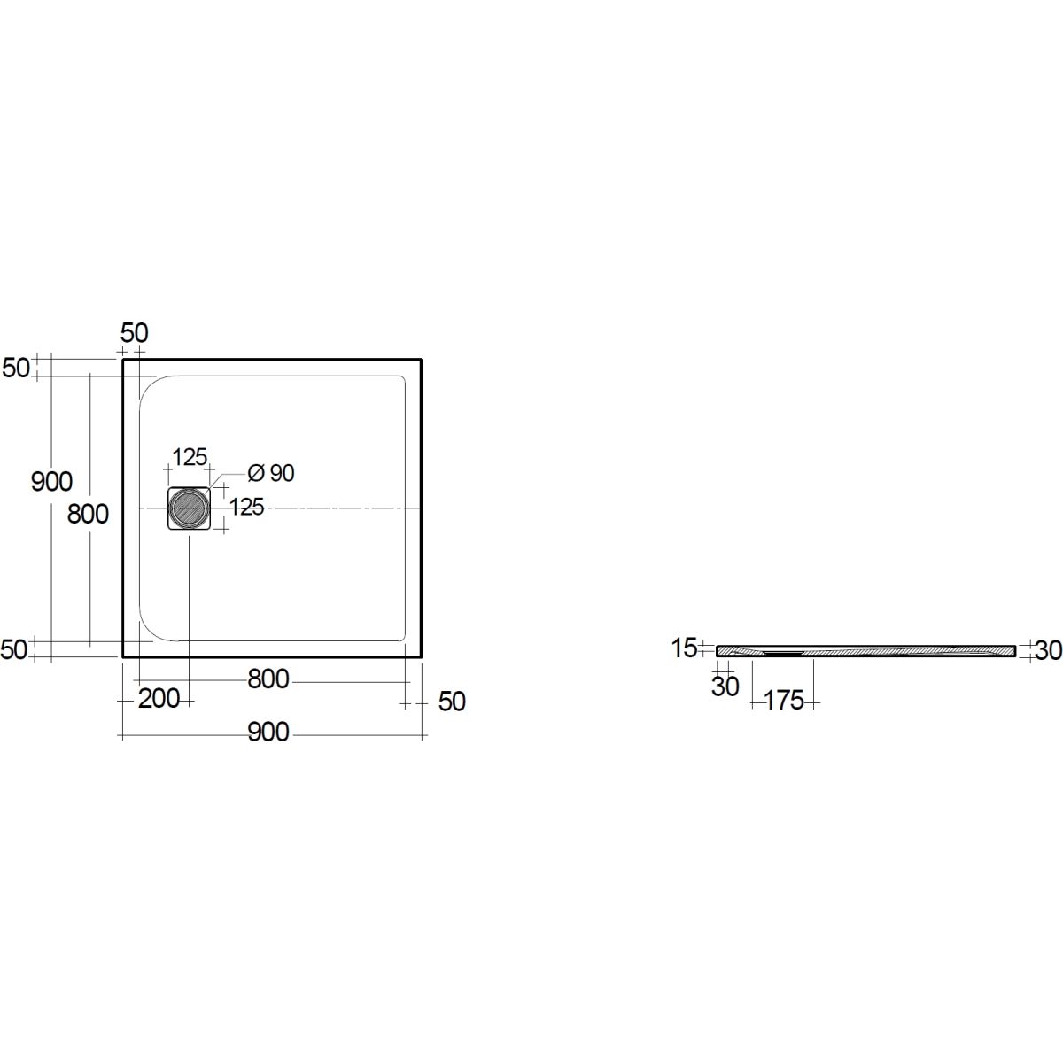- écoulement situé au centre le long d'un des côtés Ø 9 cm