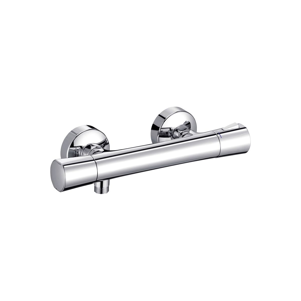 Un mitigeur thermostatique conçu pour être monté en surface dans une cabine de douche. Ce type de produit est utilisé partout où il y a des problèmes de surpression fréquente de l'eau. Le thermostat garantit que la température de l'eau reste constante, quels que soient les facteurs externes.