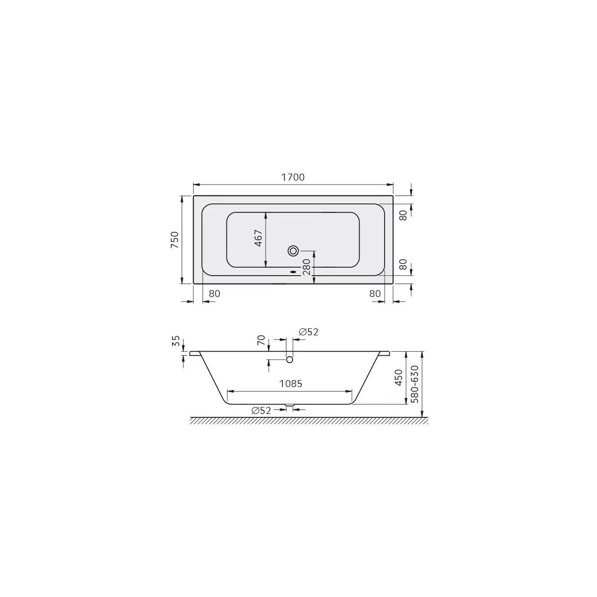 Kronenbach Cube baignoire rectangulaire 170x75 cm blanc KBABD1775