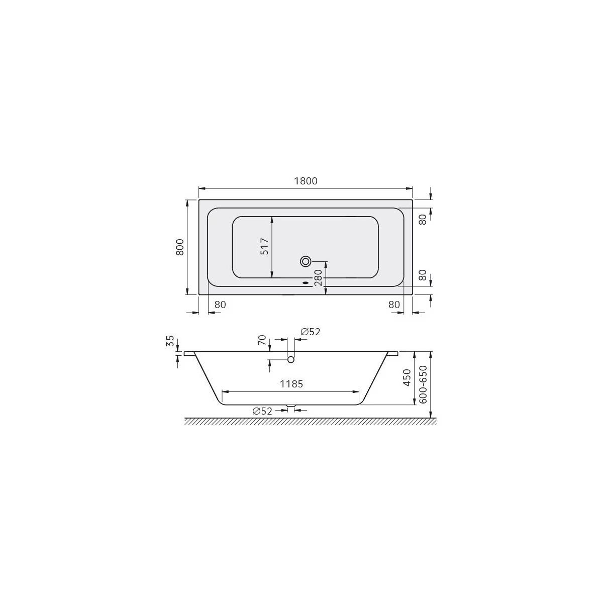 Kronenbach Cube baignoire rectangulaire 180x80 cm blanc KBABD1880