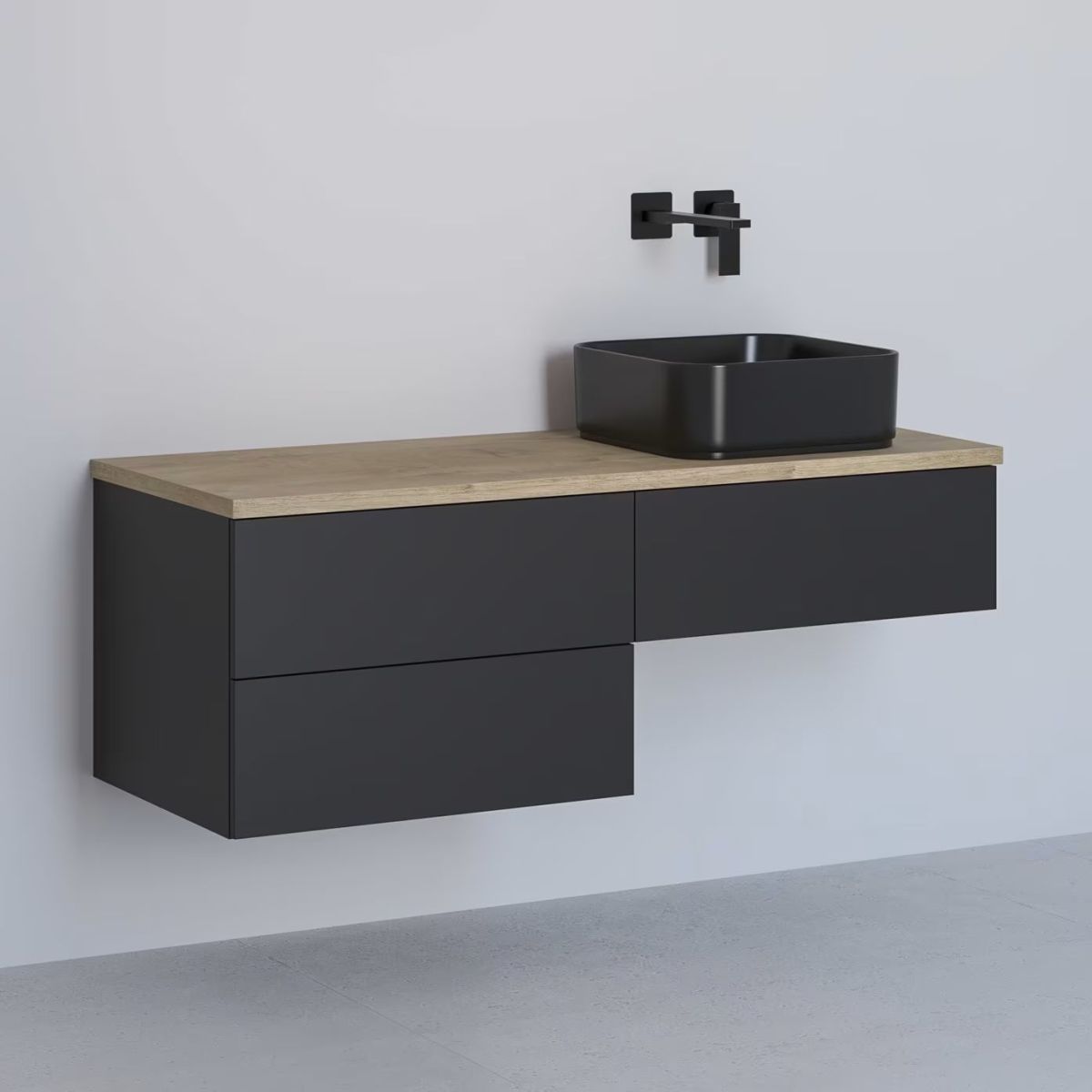 Kronenbach Cube meuble avec plan de travail 121x48.7x44.5 cm sous-lavabo suspendu noir-chêne KBWTKOWTL1213SMGH