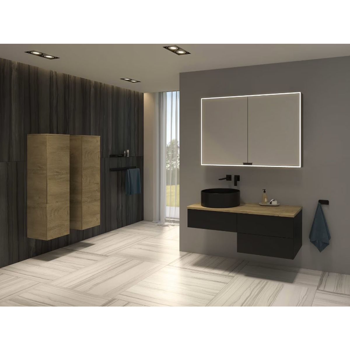 Kronenbach Cube meuble avec plan de travail 141x48.7x44.5 cm sous-lavabo suspendu noir-chêne KBWTKOWTL1413SMGH