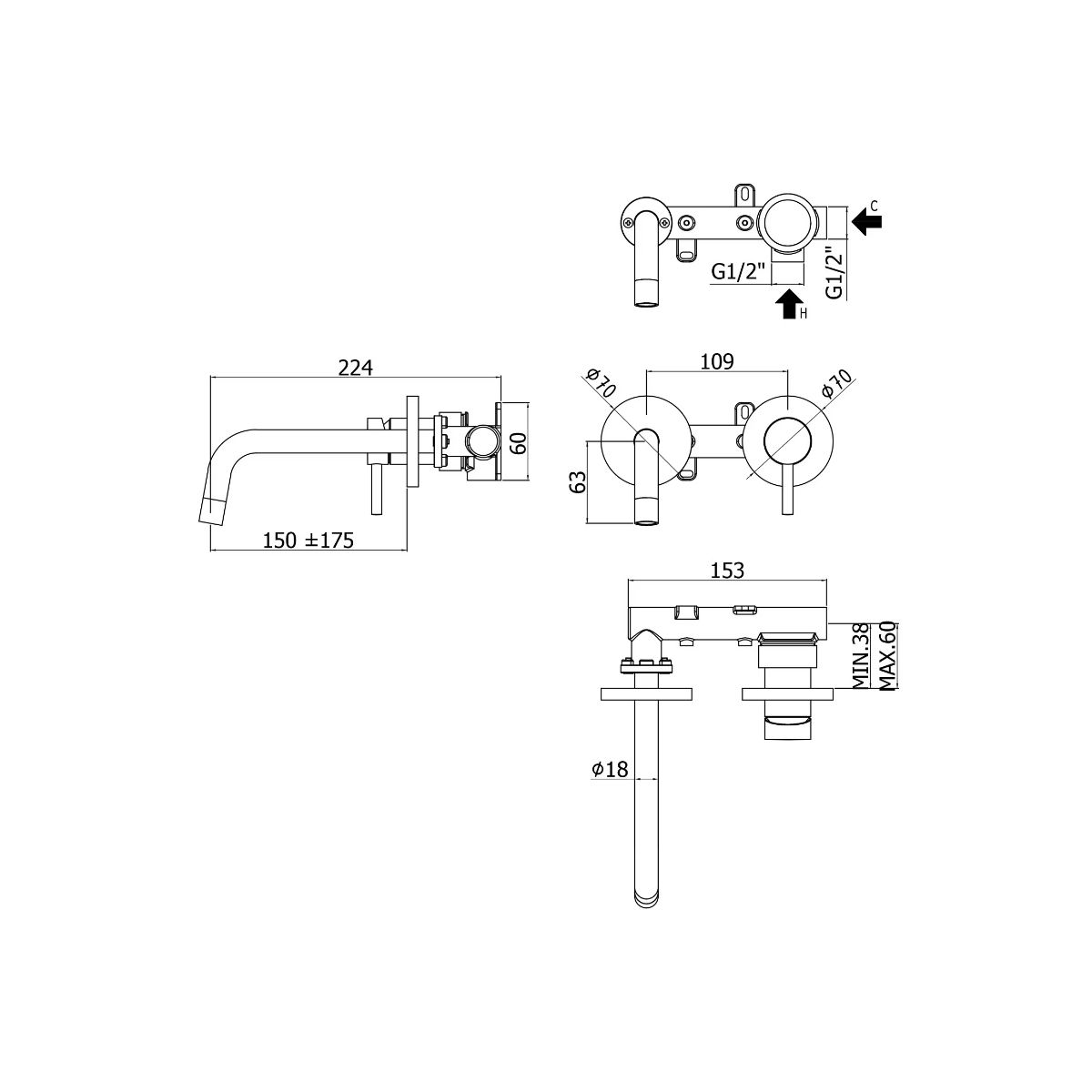 Kronenbach Lima 2.0 Black mitigeur de lavabo encastrée noir 100.1814SMKBN