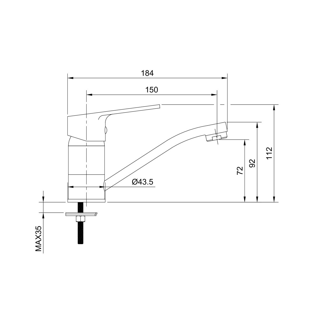 - portée du bec : 150 mm