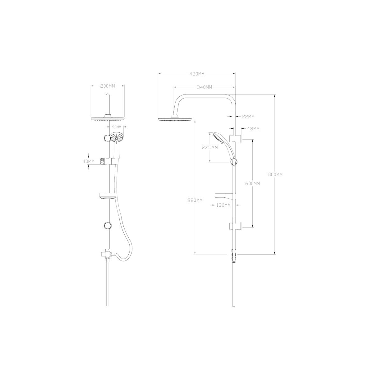 - Inclus: pommeau de douche à effet de pluie, pommeau de douche, tuyau flexible de douche, barre de douche, porte-savon