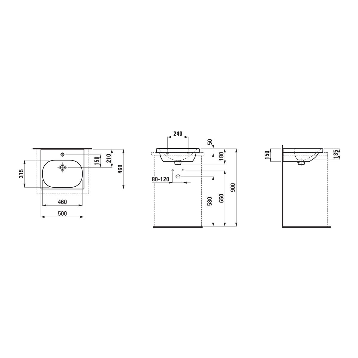 Position de la cuvette du lavabo: au milieu